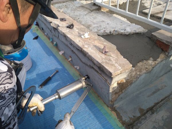 浮き部にエポキシ樹脂注入し、モルタルで埋め戻します。
