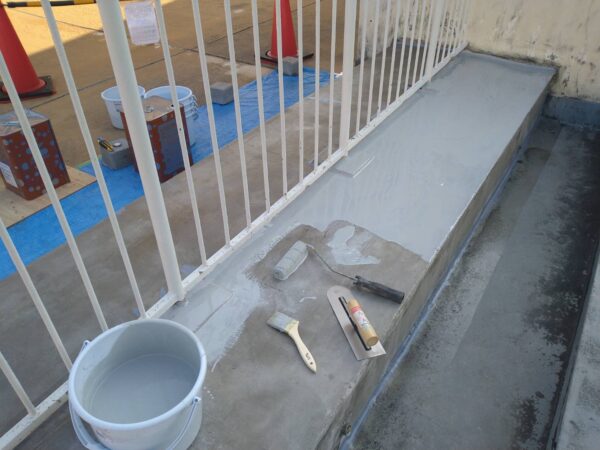 今回は前回はつり工事を行った手すり基礎を、補修いたしました。