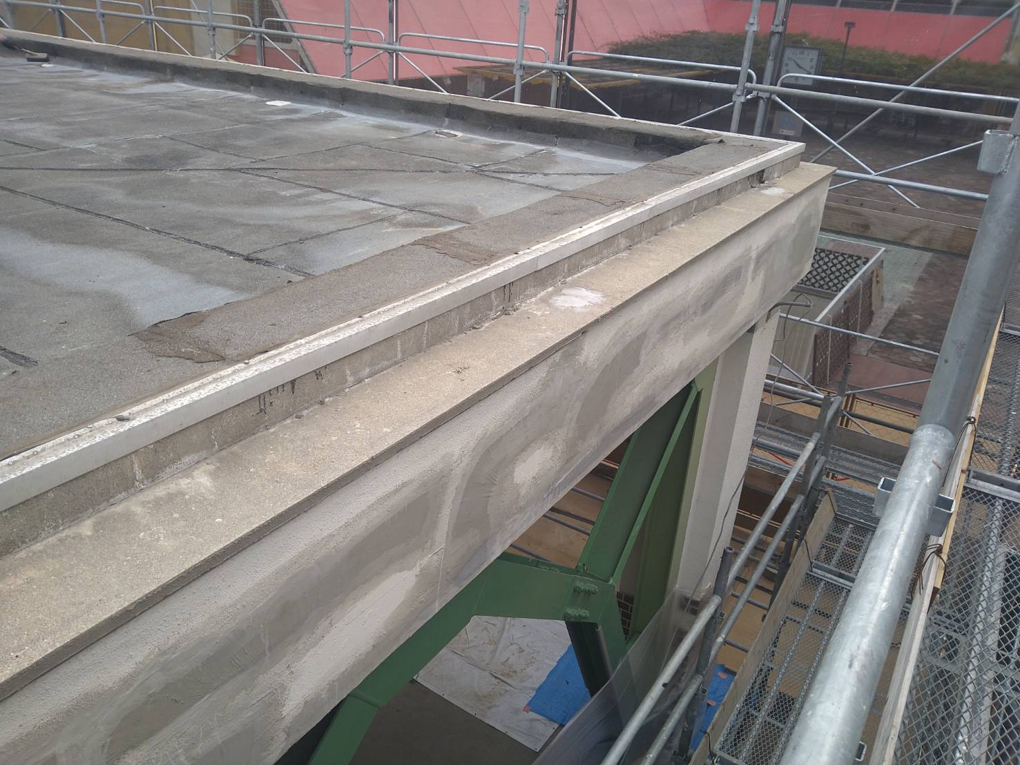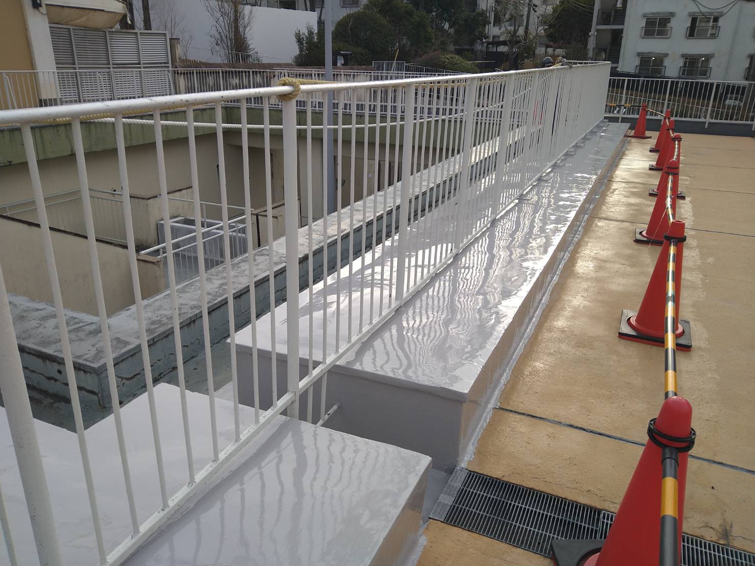 その様子をご紹介いたします。パラペットの側面、アンテナの土台を補修しました。